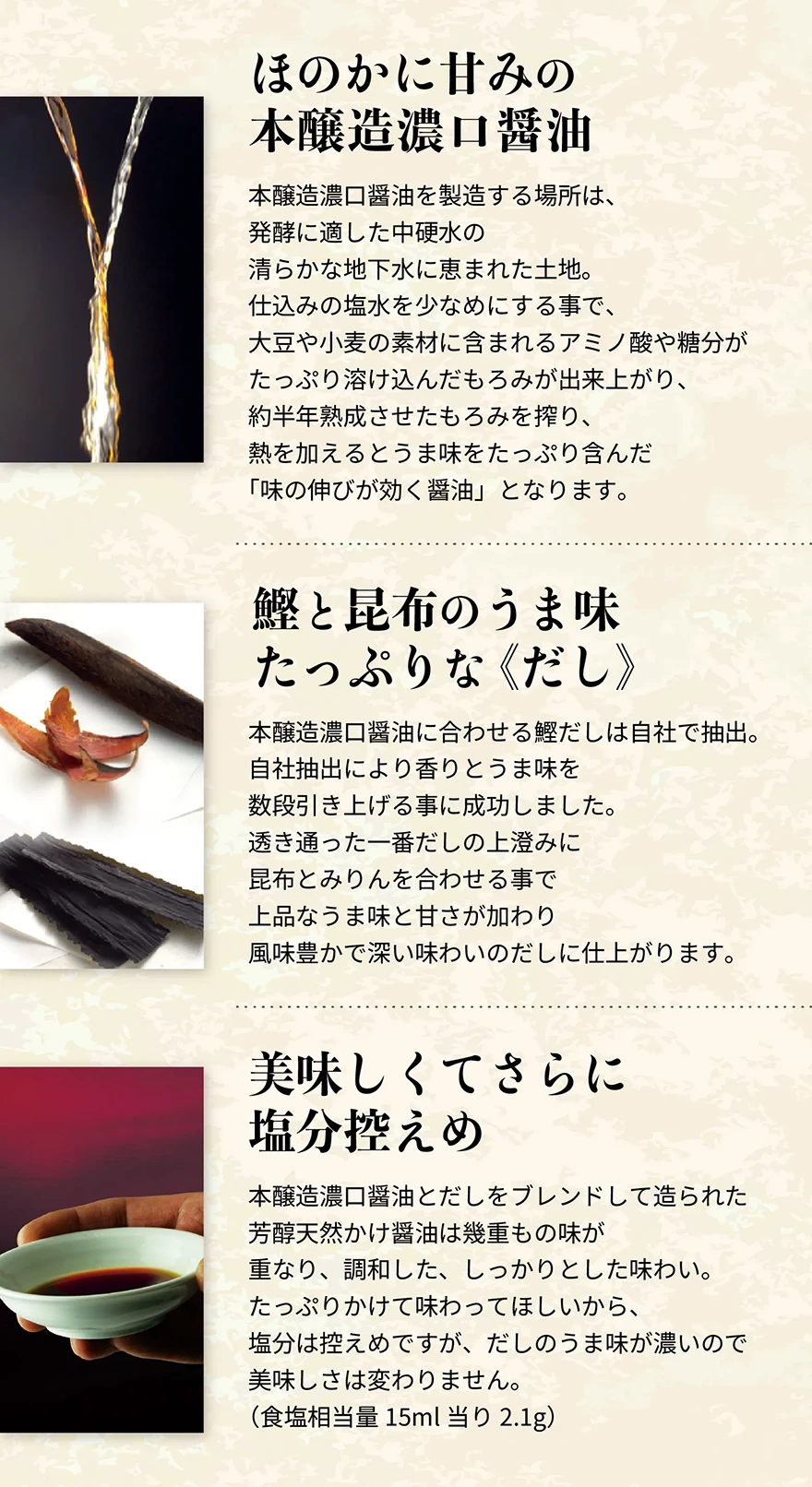 伝統の醤油と天然だしの旨味が,素材の持ち味を最大限に引き出します。